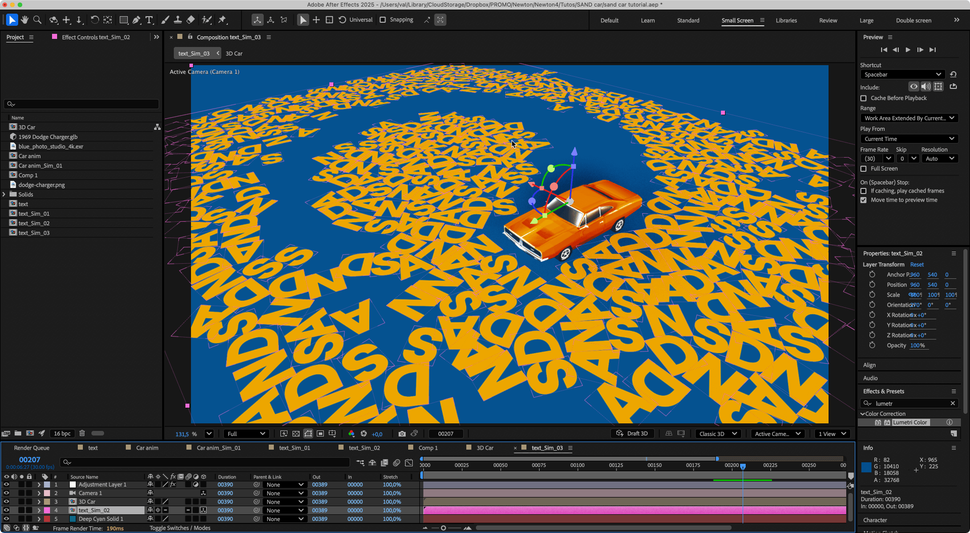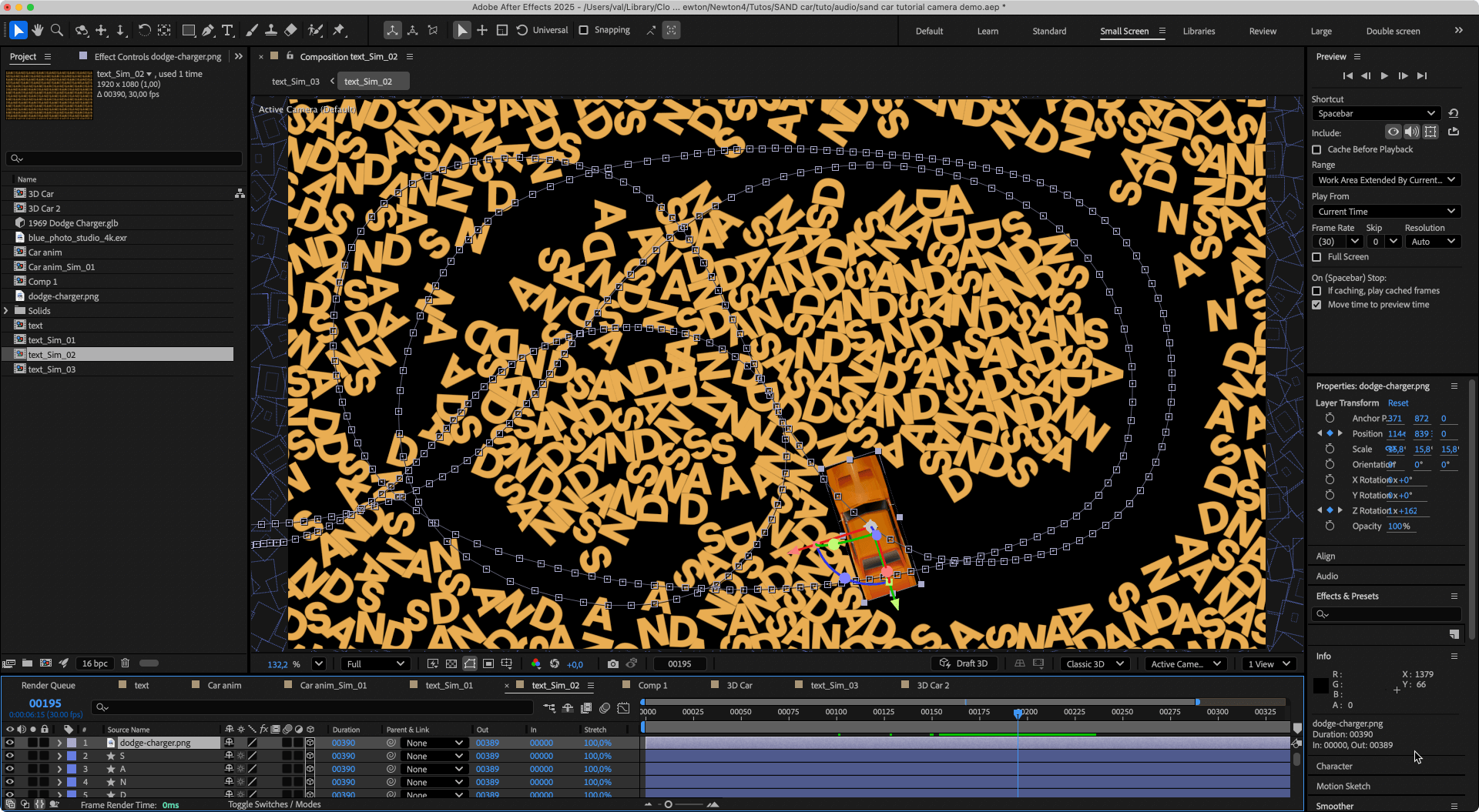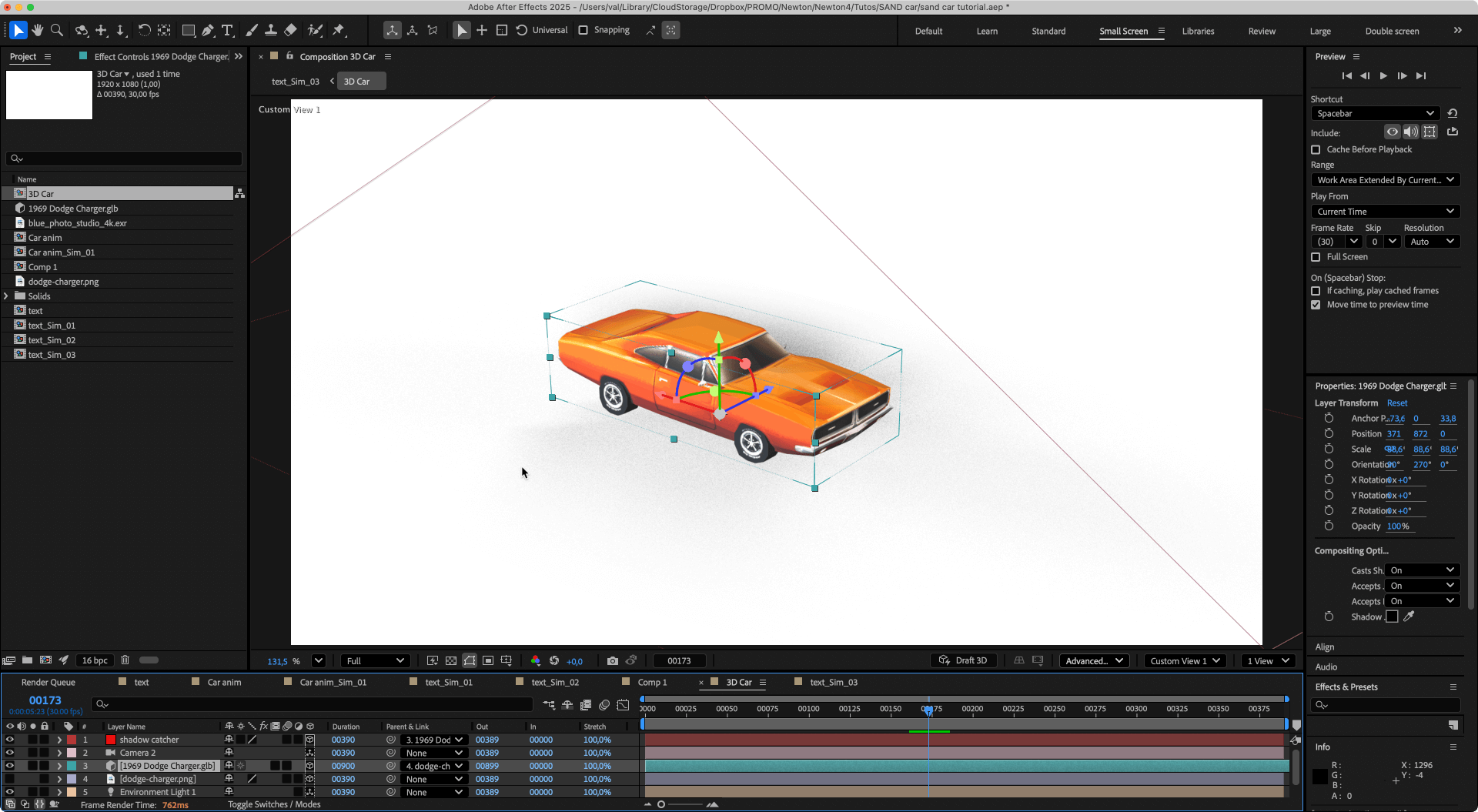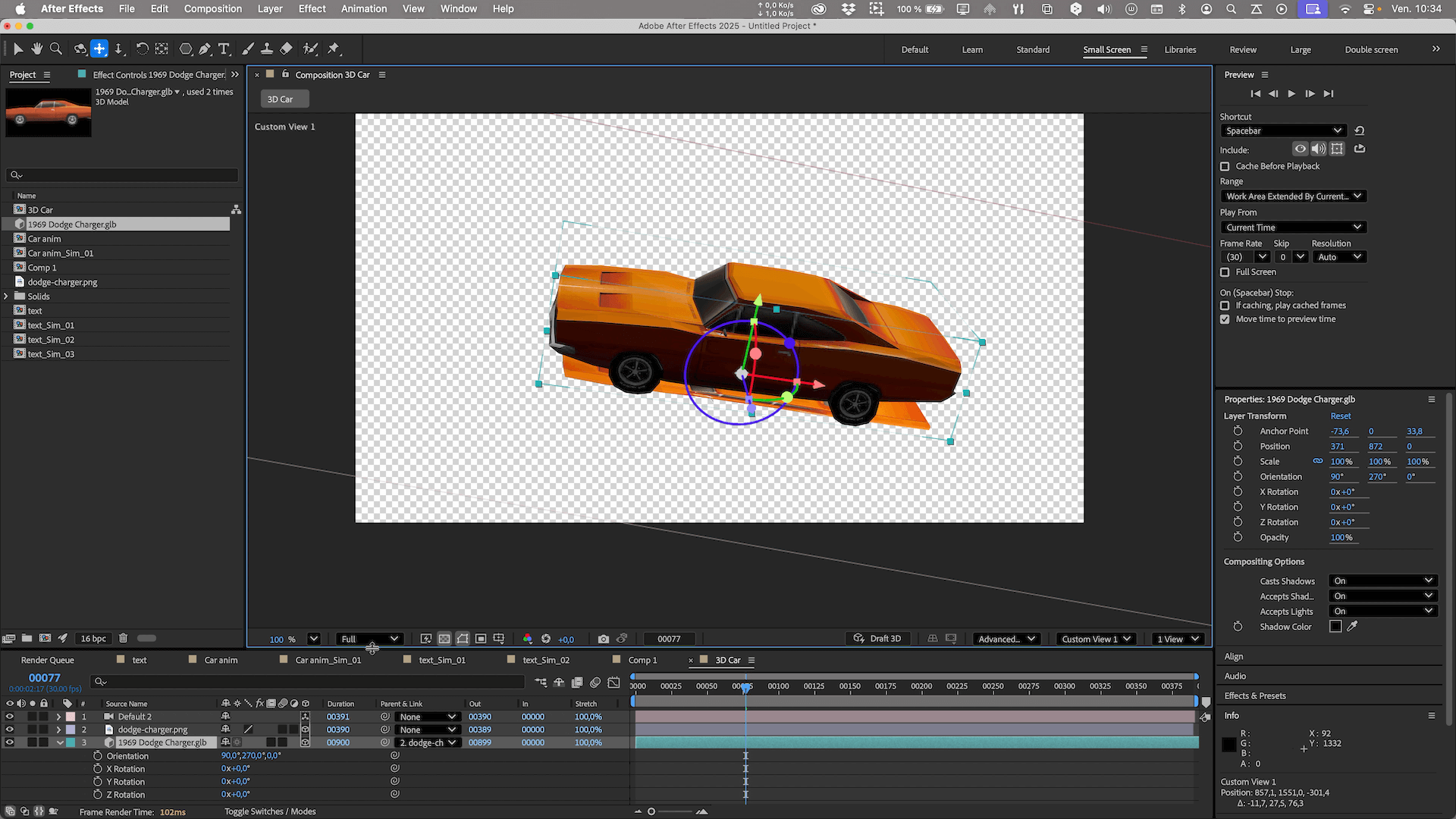 1. Import Import the "3D Car" composition into the main composition (the one with the text).